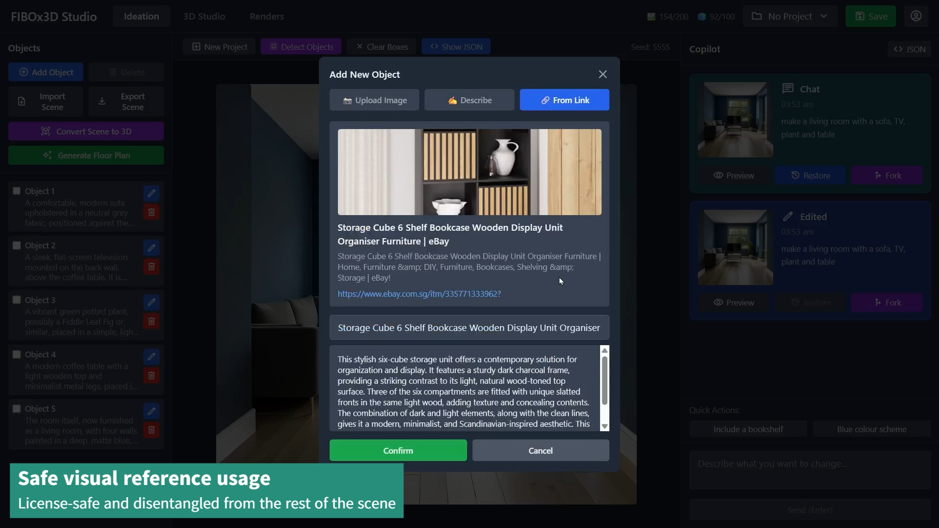 Because Bria is built on fully licensed data, every asset generated in FIBOx3D is safe for commercial use - a critical feature for our target audience of professional interior designers and game devs.