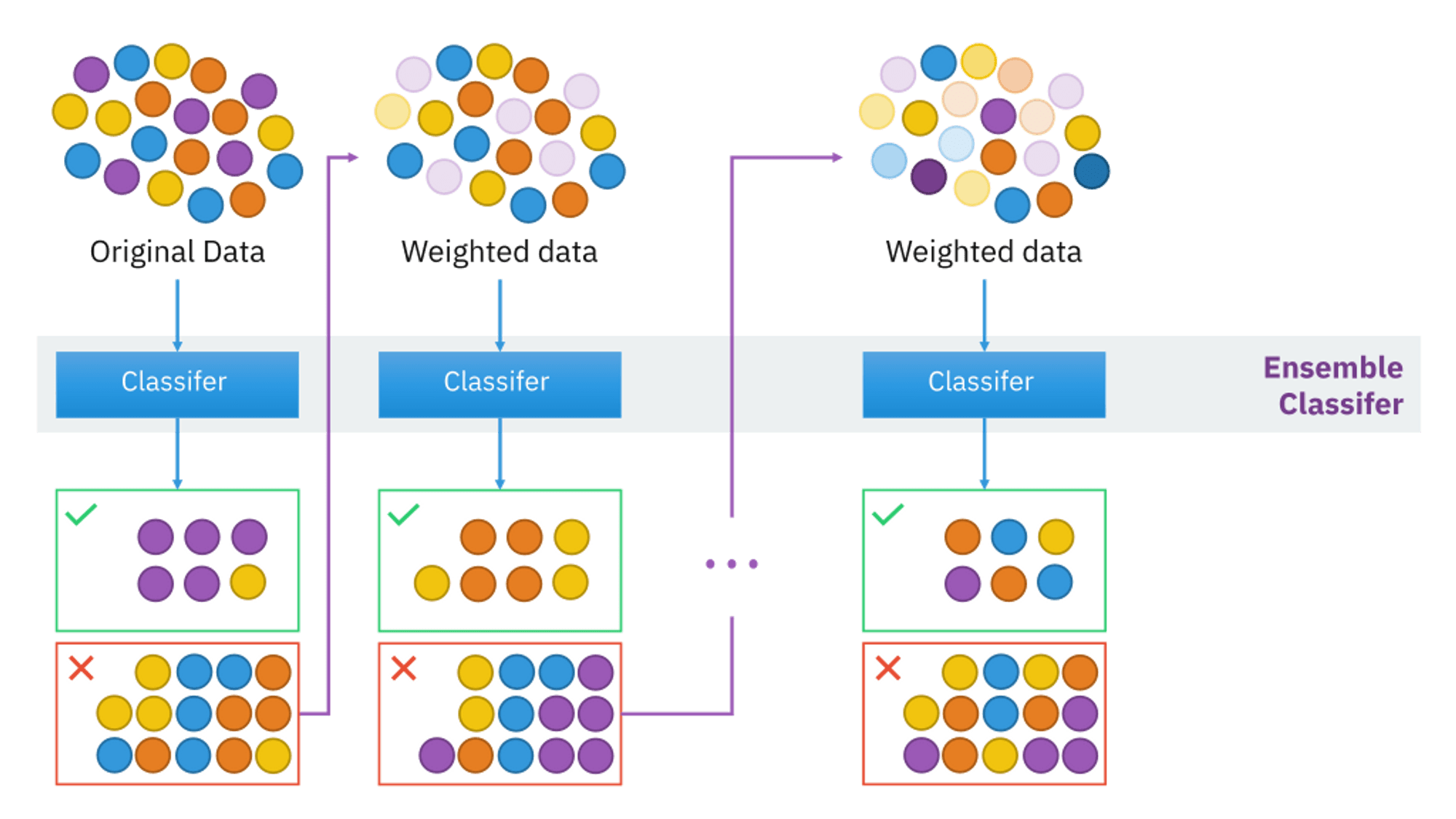 - Weighted Sampling: Misclassified instances are given higher weights to focus on in subsequent training rounds.