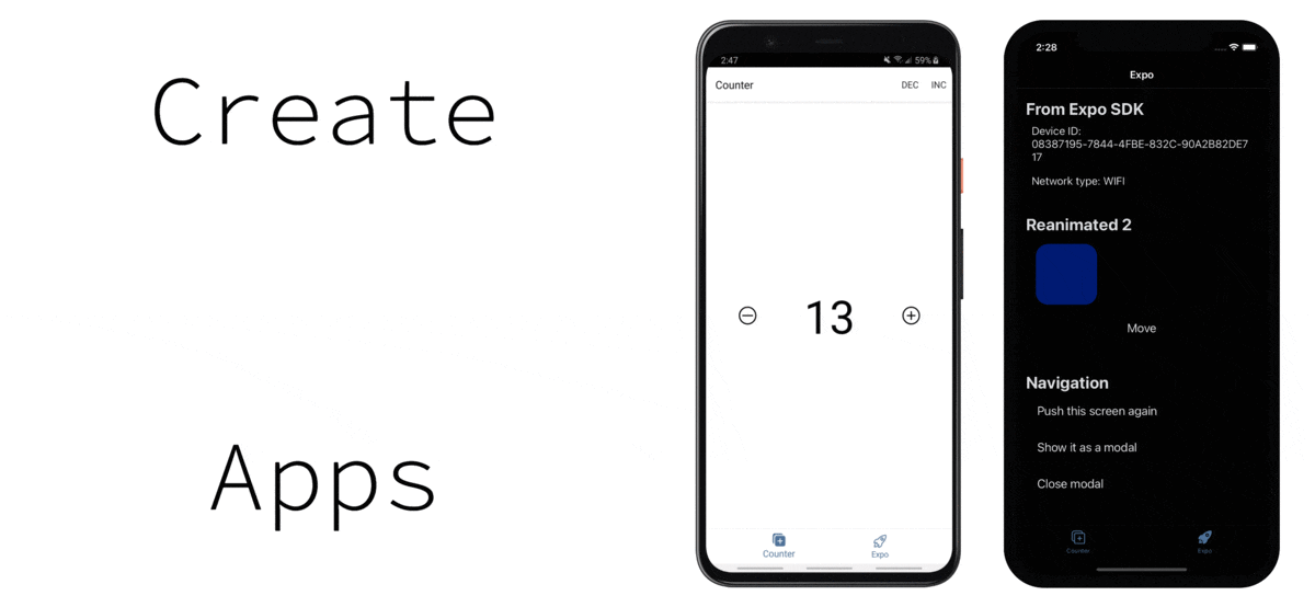 - Expo SDK - universal set of amazing libraries (such as