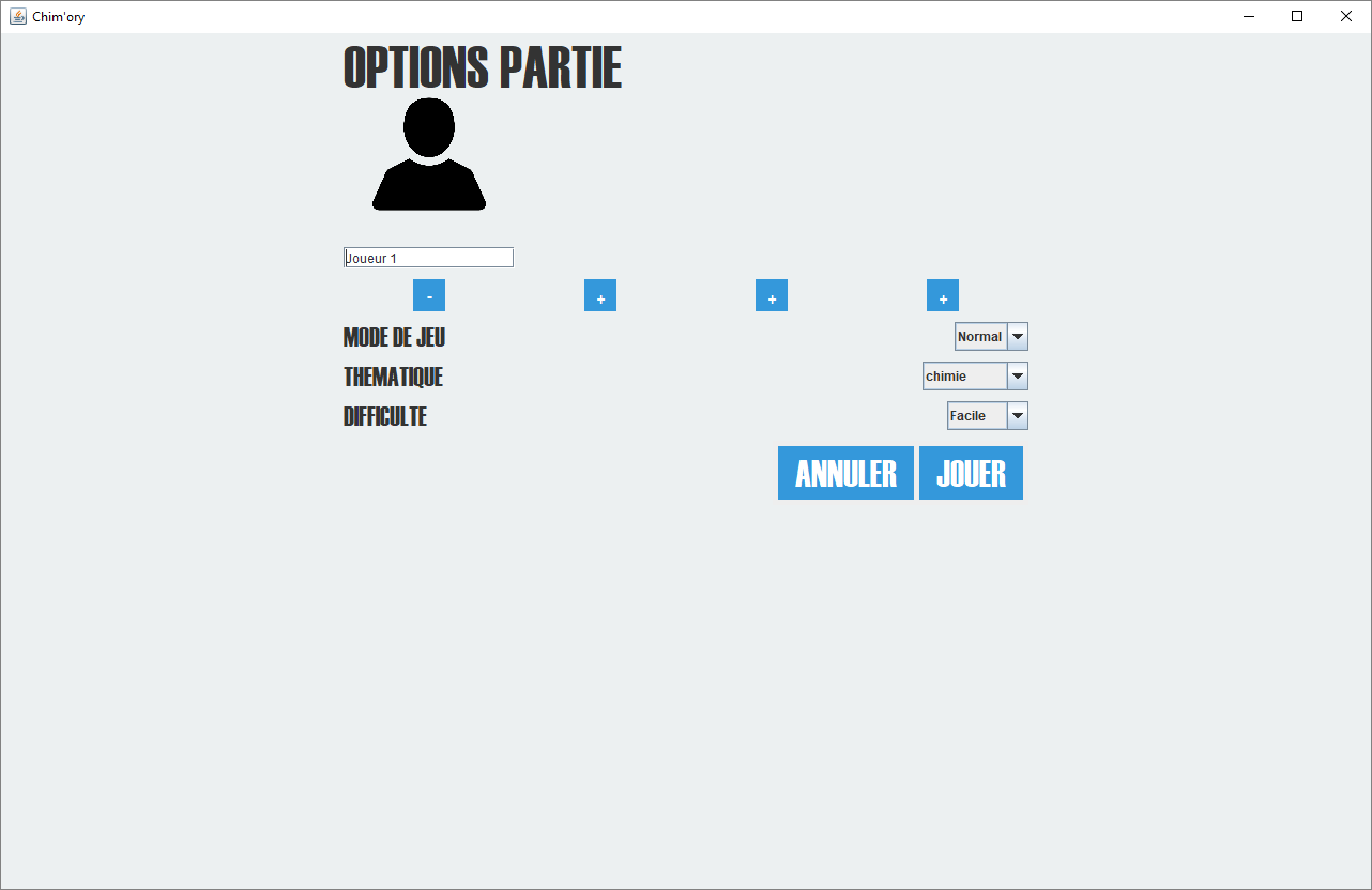 Le but de ce projet est de créer une application dédiée aux étudiants du département génie biologique de l’IUT de Laval afin qu’ils améliorent leurs compétences de façon ludique et interactive. Le matériel de jeu est constitué de cartes. Il s'agit d'un jeu d'associations faisant appel à des connaissances en chimie organique et à la mémoire. Le jeu est constitué de 3 groupes de cartes. Les cartes des 2 premiers groupes, qu'on découvre, doivent être associées à une carte du 3ème groupe.