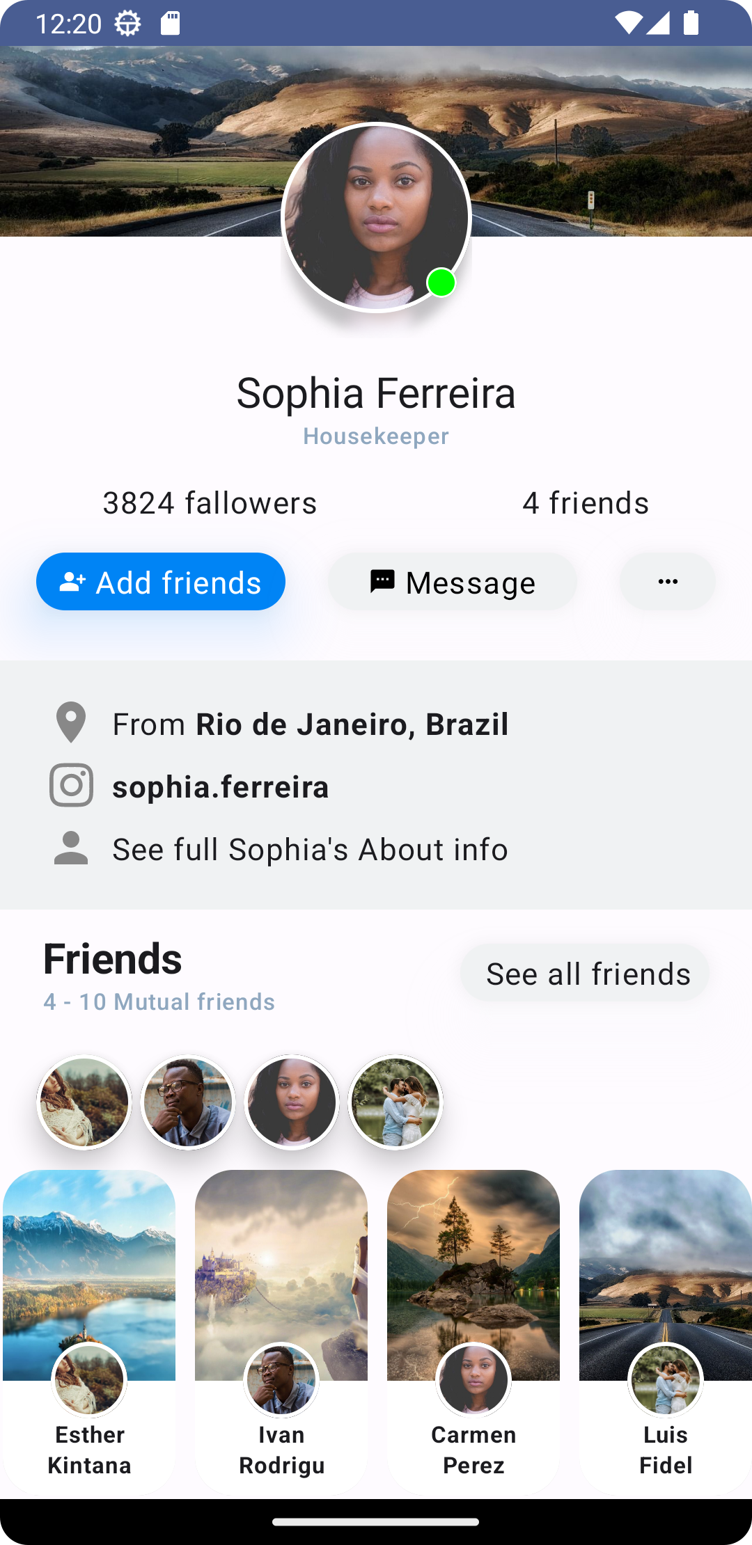 | Home Screen | User Profile |