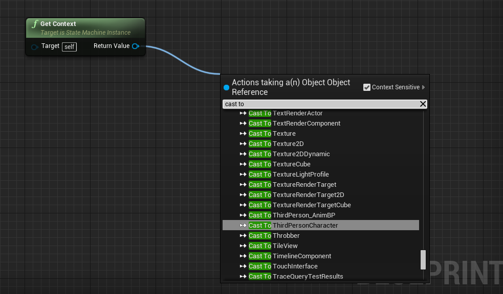 When designing a State Machine Blueprint you can reference the object the State Machine represents by calling Get Context in any graph and casting it to your object type.