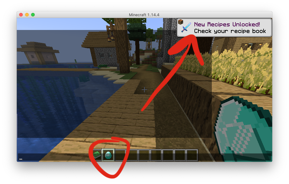 unlock recipe "emerald_sword" for playerYou will see that when a player picks up the diamond, the recipe will be unlocked and they will receive a toast notification letting them know the recipe was unlocked.