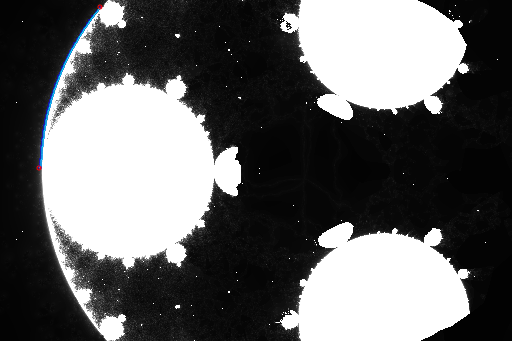 When you click on the Mandelbrot image, used for navigation during the animation, you can actually see the Julia Map. This is an interactive map which display, for each point in the complex plane the corresponding Julia Fractal. This map clearly shows the location of the fractal which are 'interesting' to view, which are typically the one at the border of the Mandelbrot set.
