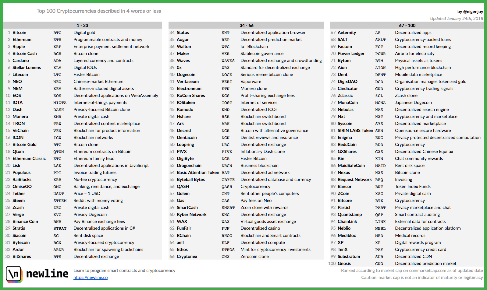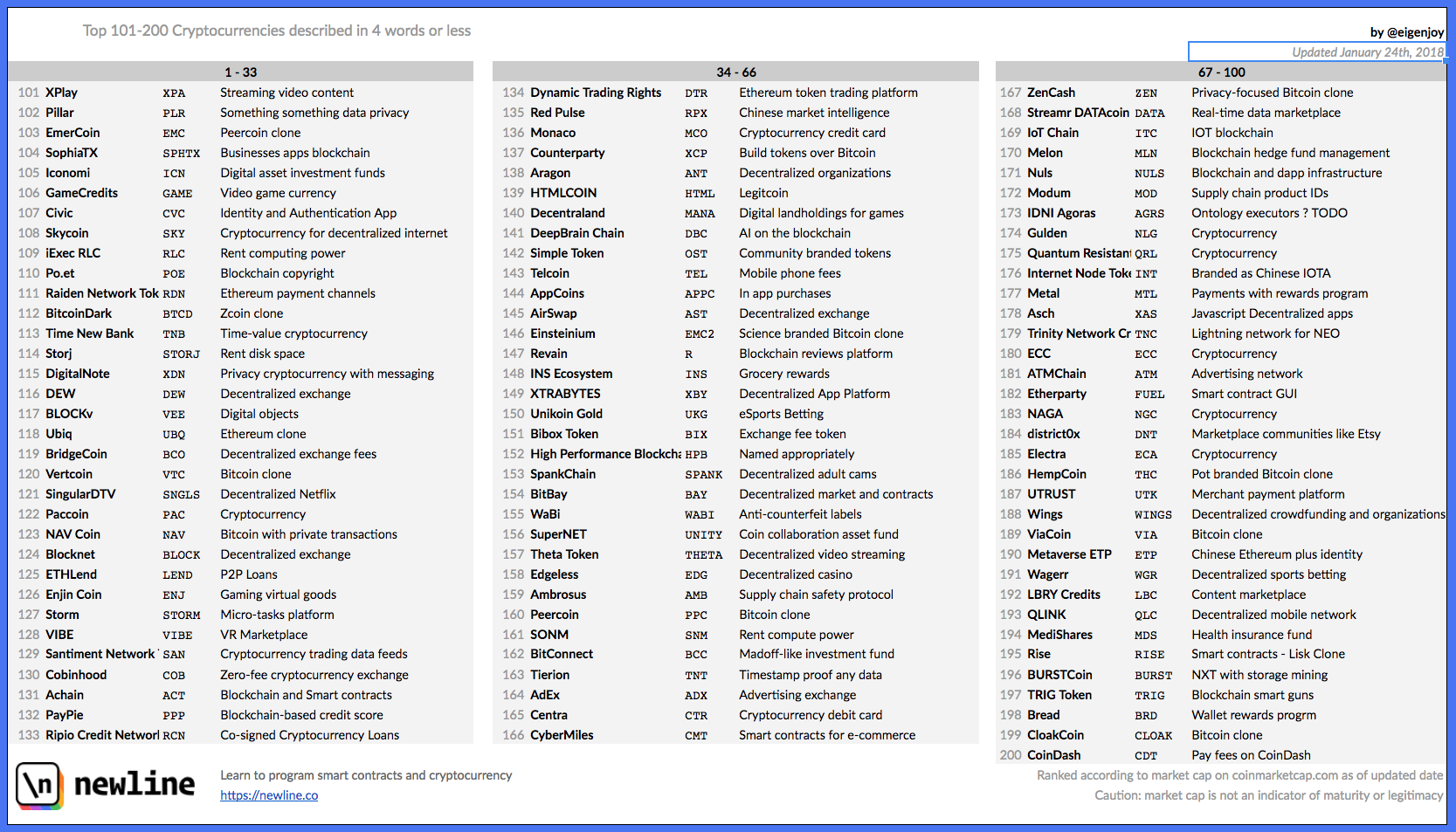 This list describes cryptocurrencies. Each gets four words. There are many.