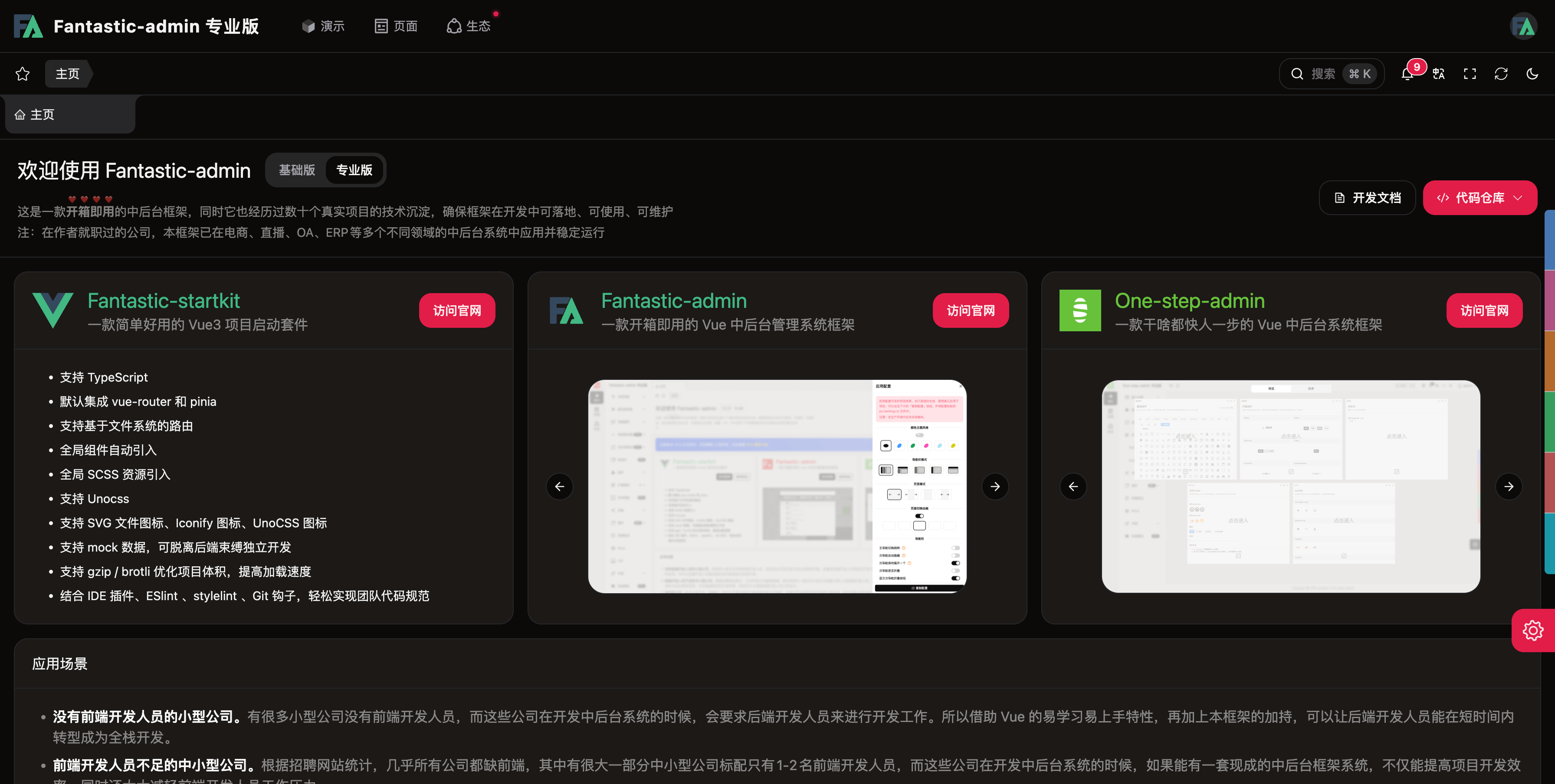 | 一款开箱即用的 Vue 中后台管理系统框架 | ||