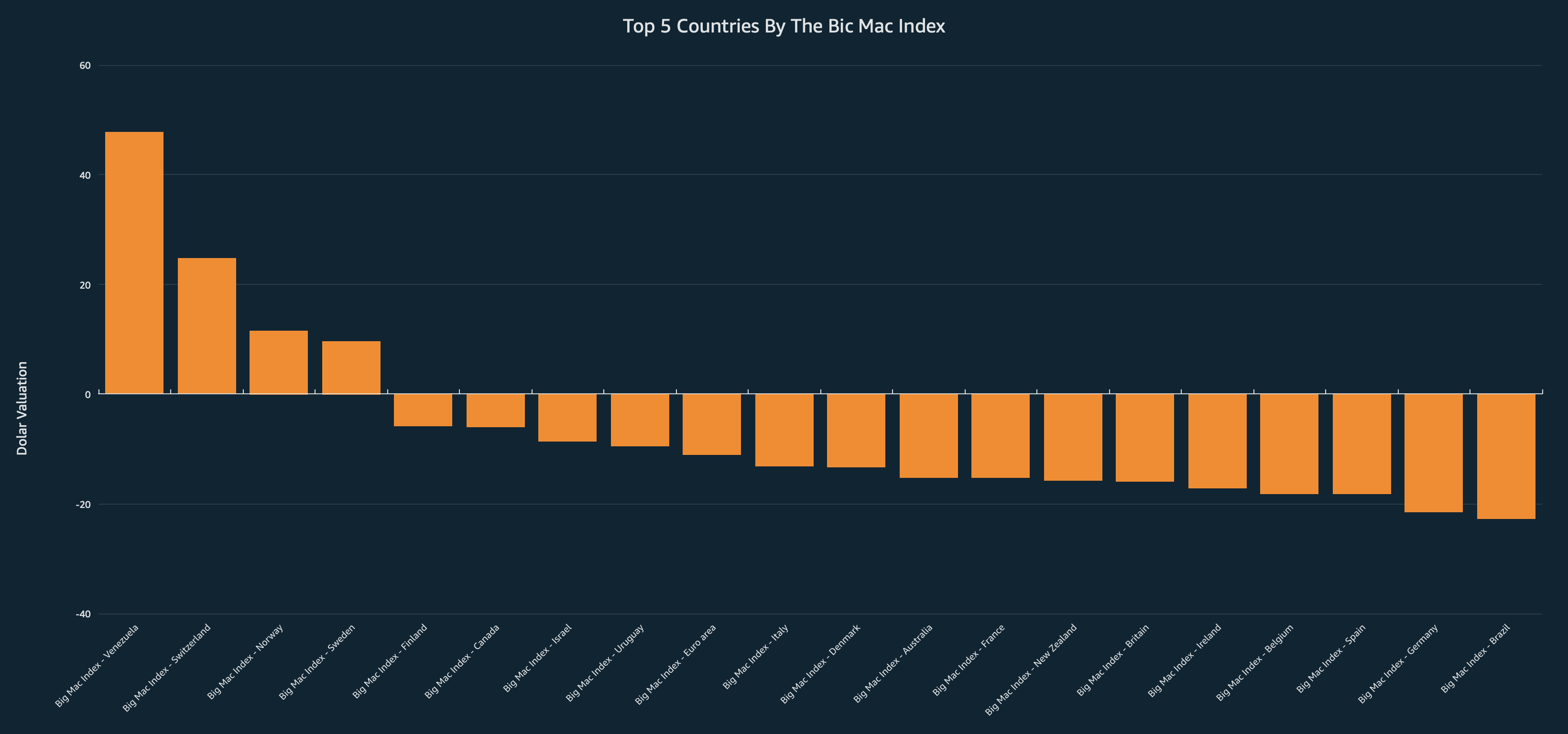 Script creates a data visualization based on the TOP countries with the highest Big Mac index in July 2021 using Amazon QuickSight.