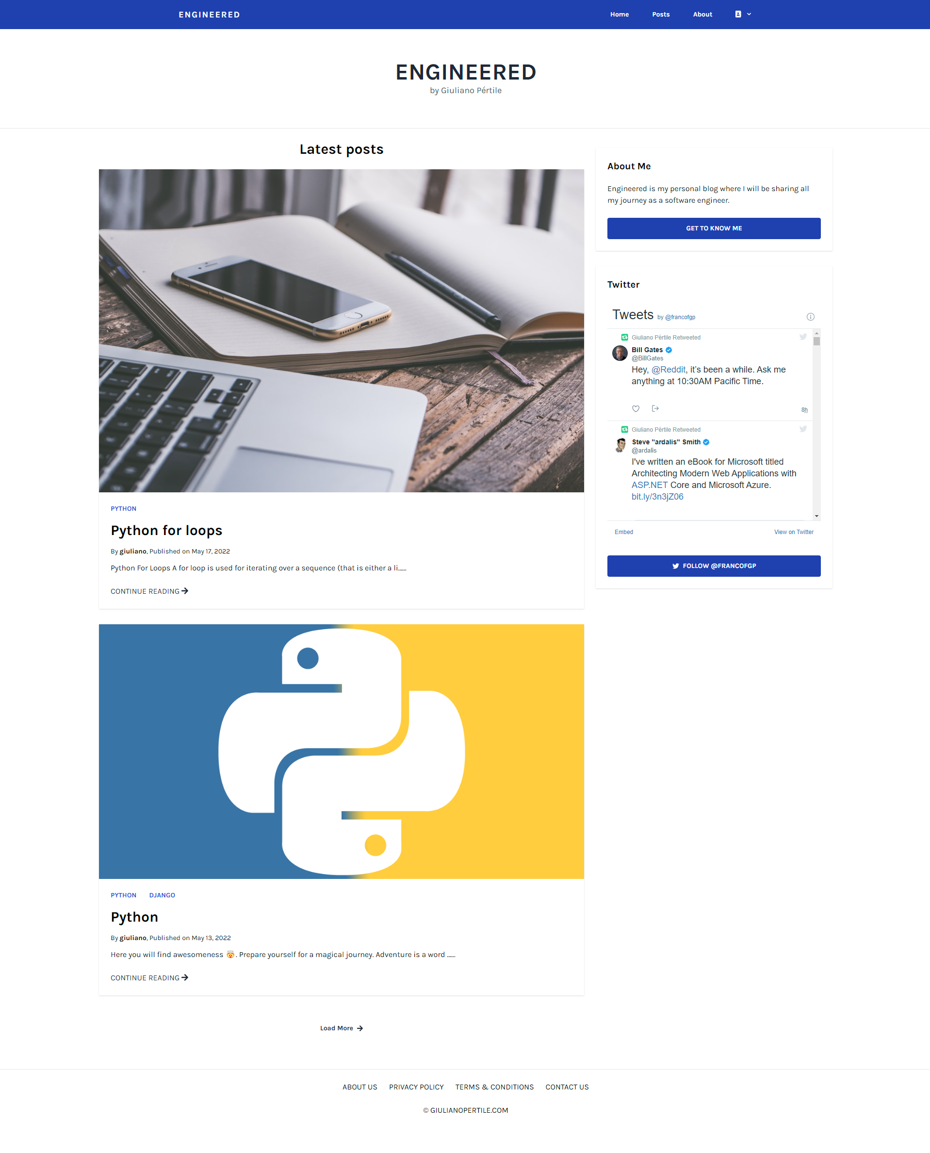 Engineered is my personal blog made with Django, where I will be sharing my journey as a software engineer.