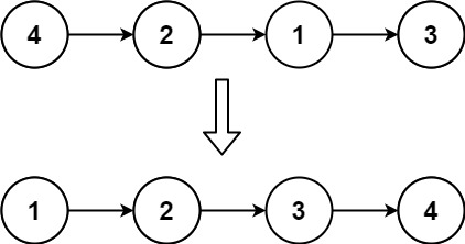 Input: head = [4,2,1,3] Output: [1,2,3,4]