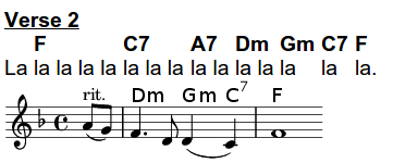 ; \chords { \set noChordSymbol = ##f r4 d2:m g4:m c:7 f1 }