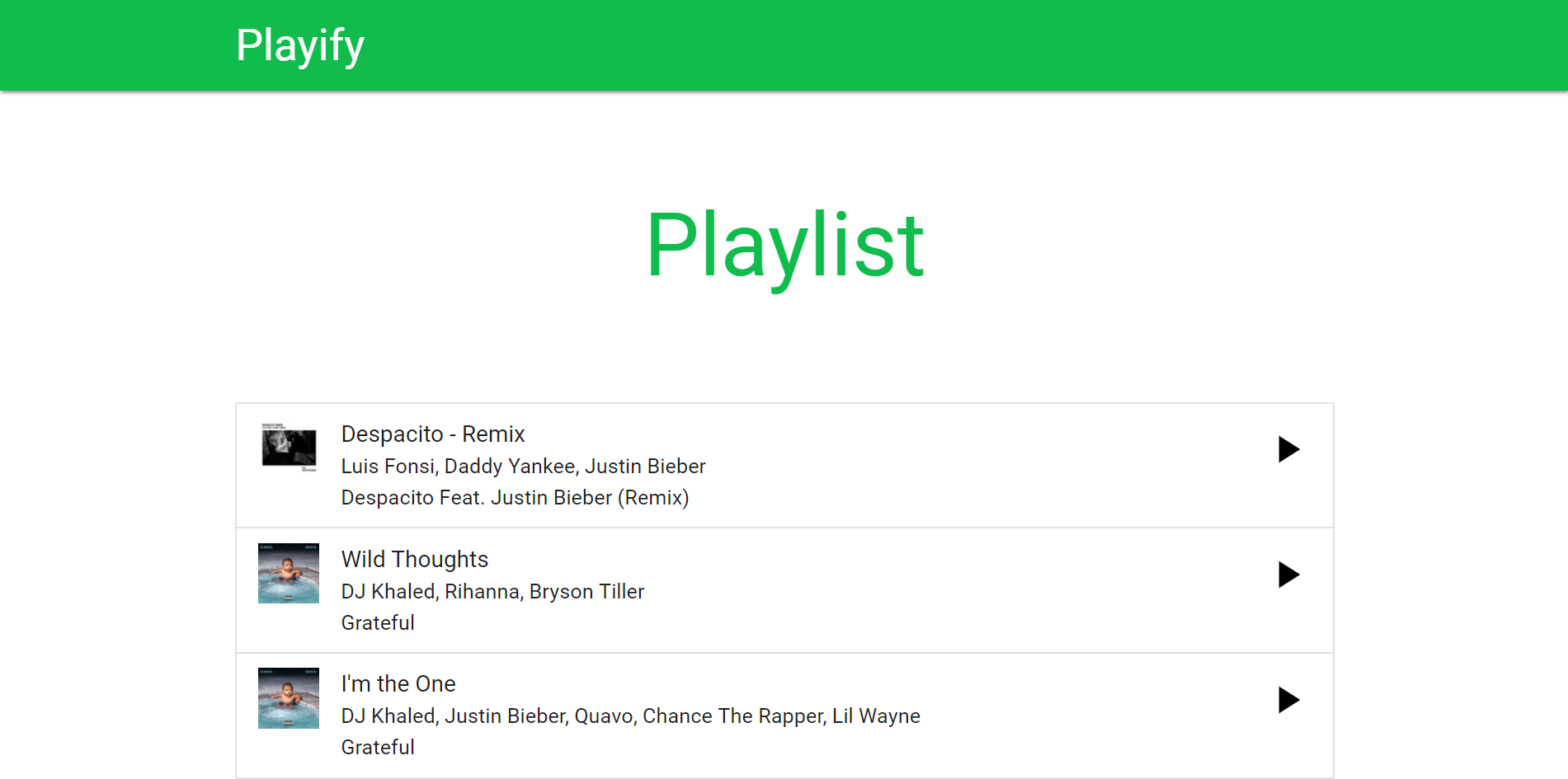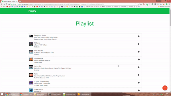 Songs play directly on the playlist page
