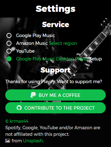 Support for the Google Play Music Desktop Player