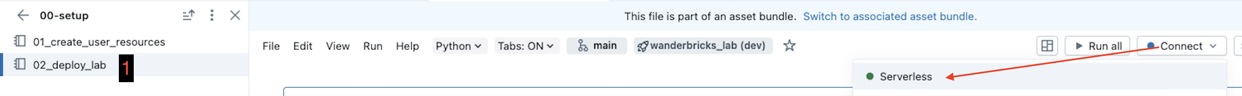 - Deployment notebook: lab/00-setup/02_deploy_lab.ipynb customized for your repo path
