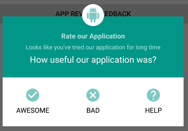 7. setPositiveFeedbackIcon(@DrawableRes int mPositiveFeedbackIcon) - set Positive Feedback button Icon as drawable resource