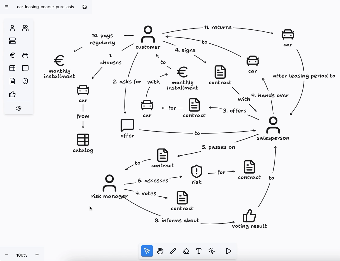 - Domain Storytelling - Visualize and communicate domain knowledge through collaborative storytelling. Create pictorial domain models that bridge the gap between domain experts and development teams.