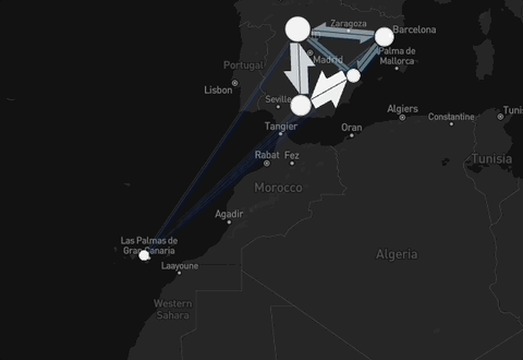 We’ll use the same input data to pick-out the most important flows in Spain, with a focus on longer trips for visualisation: