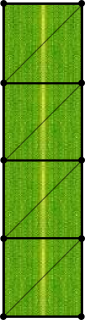 So how to pack the data for each blade of grass? Using array instancing makes this pretty straightforward. A single blade of grass mesh, without any grass-like characteristics applied, could be thought of like this: