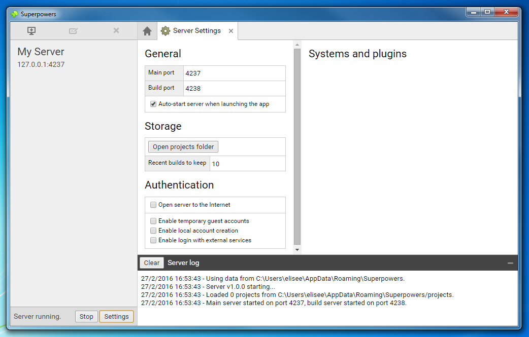 The server settings tab is shaping up. Being able to manage systems and plugins from the app is one of the last big pieces left before the release of the new app.