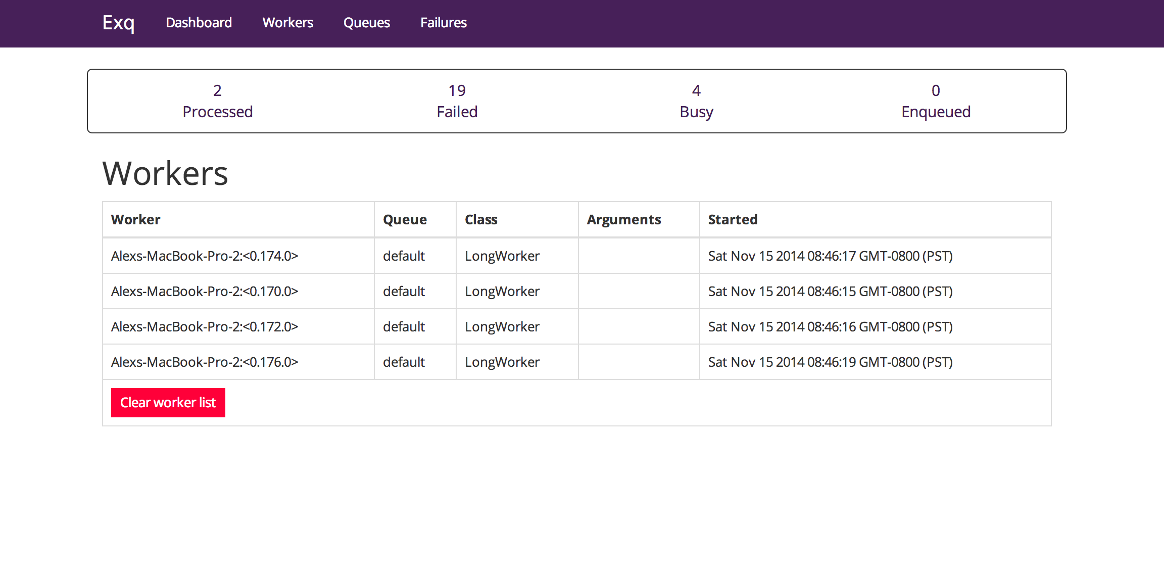 This is a screenshot of the UI Dashboard provided by Exq UI: